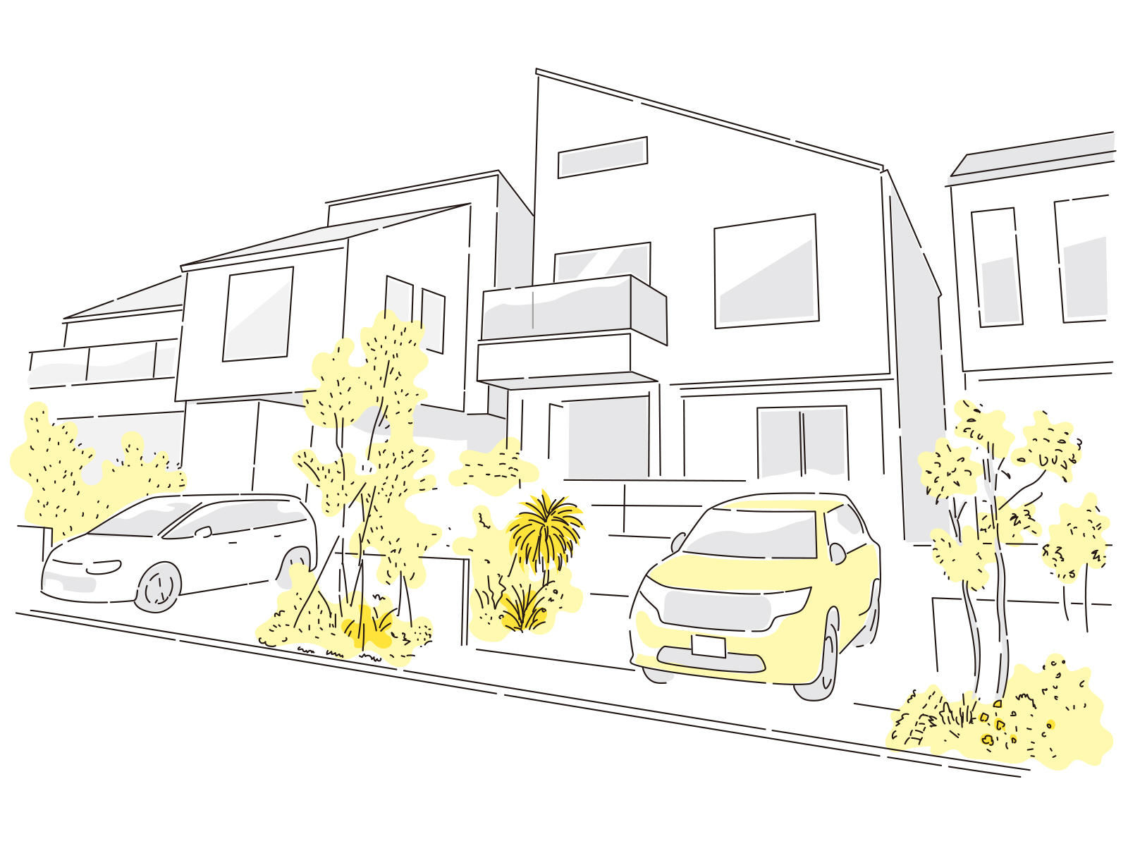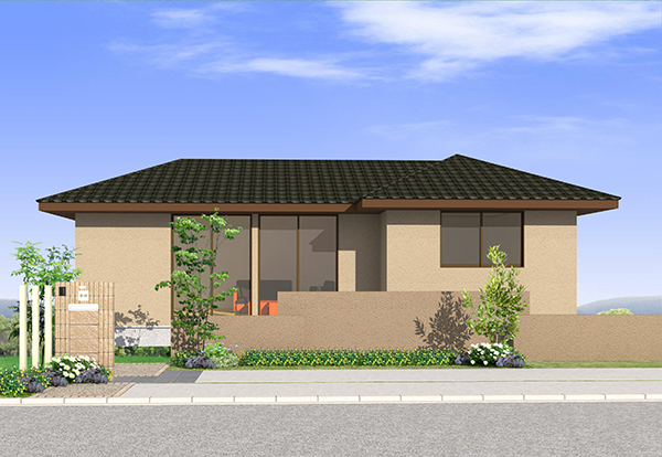 自然界に多く存在するアースカラーであるため、街並みや植栽、他の住宅とも違和感なく溶け込みます。派手すぎず控えめな印象は、住宅街でも悪目立ちせず、落ち着いた雰囲気を演出するのに向いています。