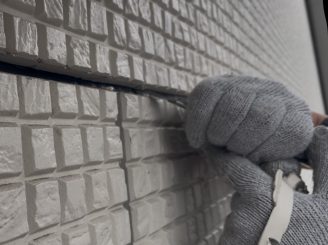 塗り替え後の塗料の色と類似色でコーキング打設していきます。