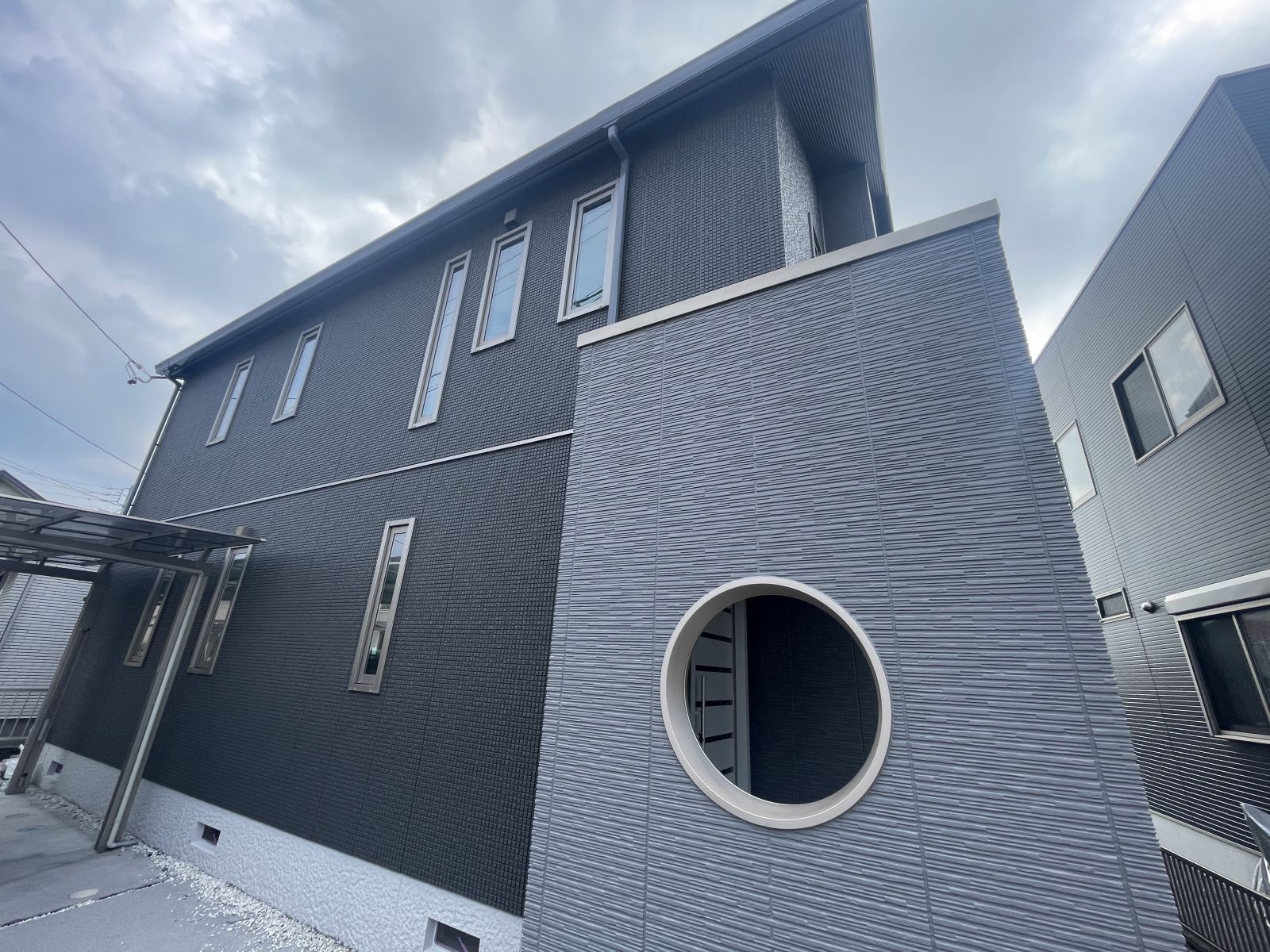 施工前はホワイトと濃いグレーの2色でしたが今回は全く違う色にしておうち全体のイメージを大きく変えてみました。メイン外壁には人気の8078(ウィザードコッパー)を採用しアクセントは合う色を選びました。今回塗装前の軒天はホワイトでしたがホワイトは汚れが目立つのでチャコールを選びました。軒天の色を変えるだけでもイメージすごく変わるのでオススメです。