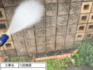 サービスで外壁だけではなくブロック塀も洗浄していきます。