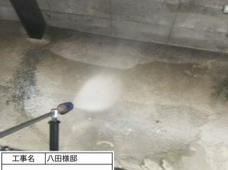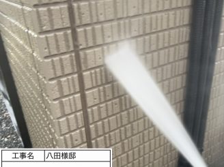 軒天もしっかり洗浄していきます。玄関周りは特に念入りに洗浄していきます。