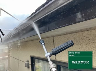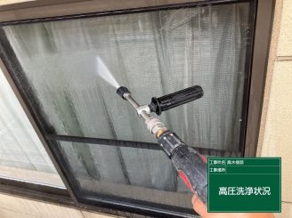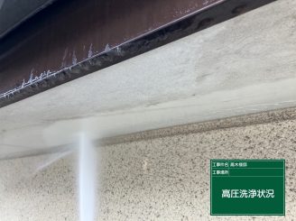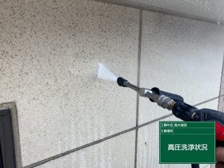今回外壁はALCでしたので汚れが中々落ちませんでした。時間をかけてしっかり洗浄していきました。