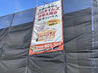 プロタイムズ揖斐大垣店の垂れ幕の1番目立つところに取り付けてもらいました。