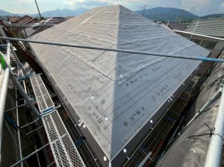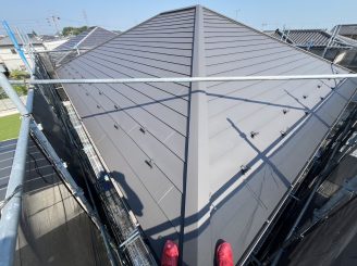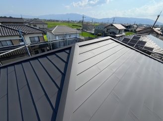 完成しました。廃棄物も少なく、屋根重量も重くならずに塗膜10年保証も付いており、何よりガルバリウム鋼板なので錆びて穴が空いてしまう可能性が極端に低いのでメンテナンスのしにくい屋根も安心です。