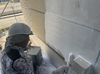 ALC用の外壁下塗り材になります。下塗りが色ムラだと上塗りの仕上がりに関係してくるのでしっかり塗っていきます。