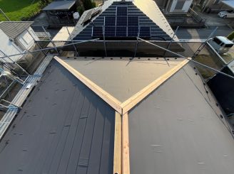 最後は雨漏れが1番心配される棟部分になるので木下地もしっかりと丁寧に施工していきます。